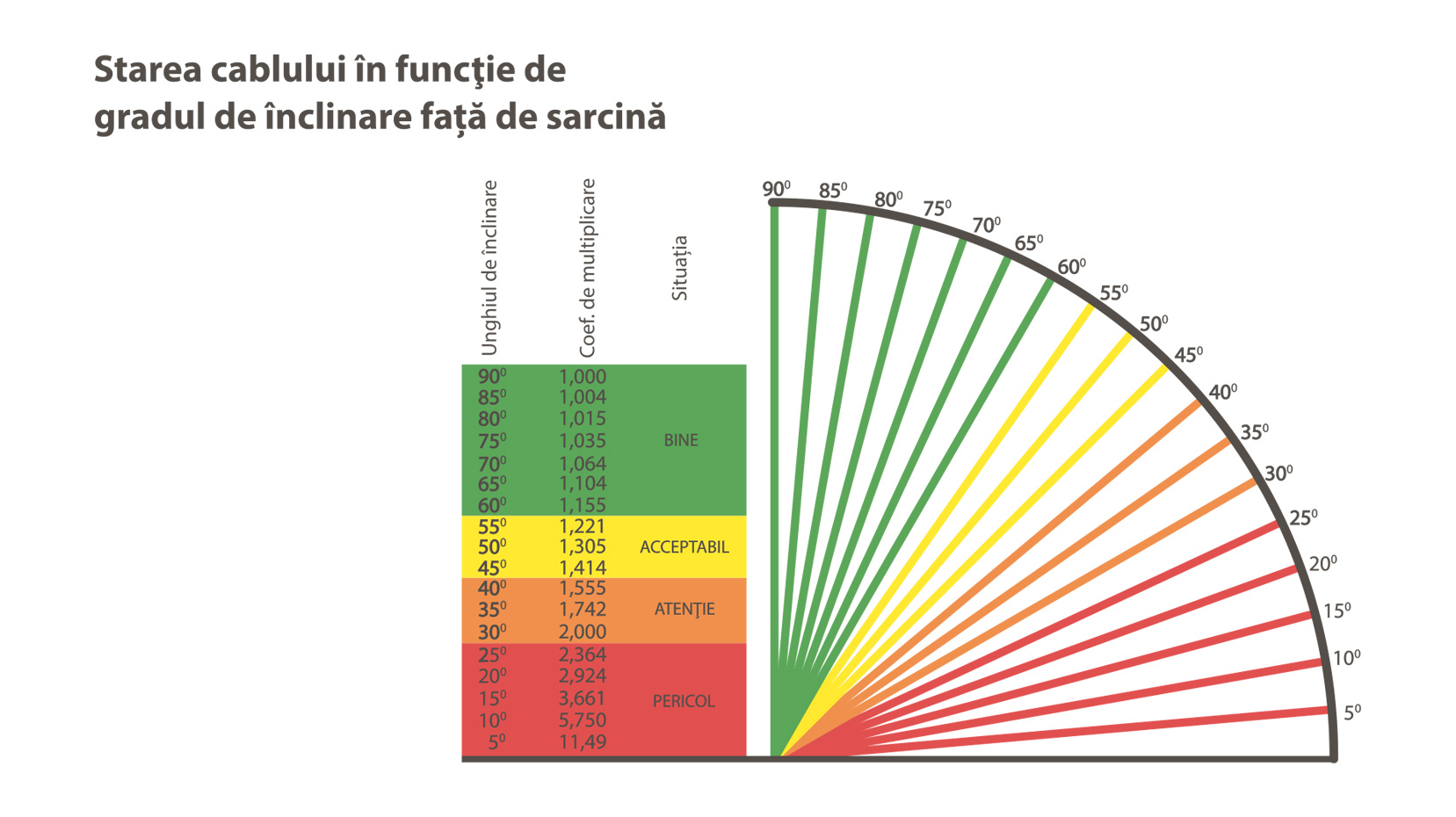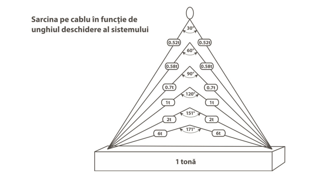 Când vine vorba de legături de ridicare, este interzisă ridicarea sarcinilor dacă unghiul față de verticală este mai mare de 60 de grade.